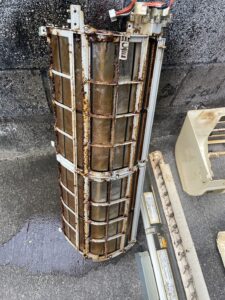 藤枝市で業務用の天井カセットエアコンのクリーニングをしました。分解してみると、カビやホコリ、油などでとっても汚れていますね業務用エアコン、家庭用エアコンどちらのクリーニングも取付工事も種石空調におまか